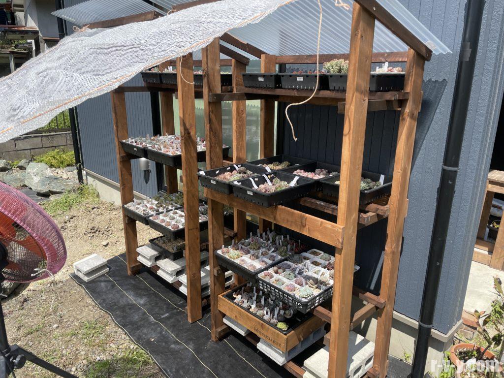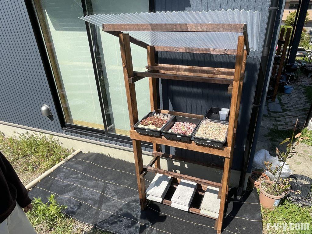 今回は多肉植物の為の棚作りについて実際に作成した時の写真と、2年ほど使用してみて、注意点交えて解説していこうと思います。